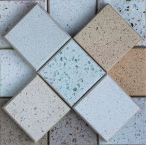 A sample of decorative artificial stone. Natural stone texture for kitchen countertops and floors. Finishing materials.